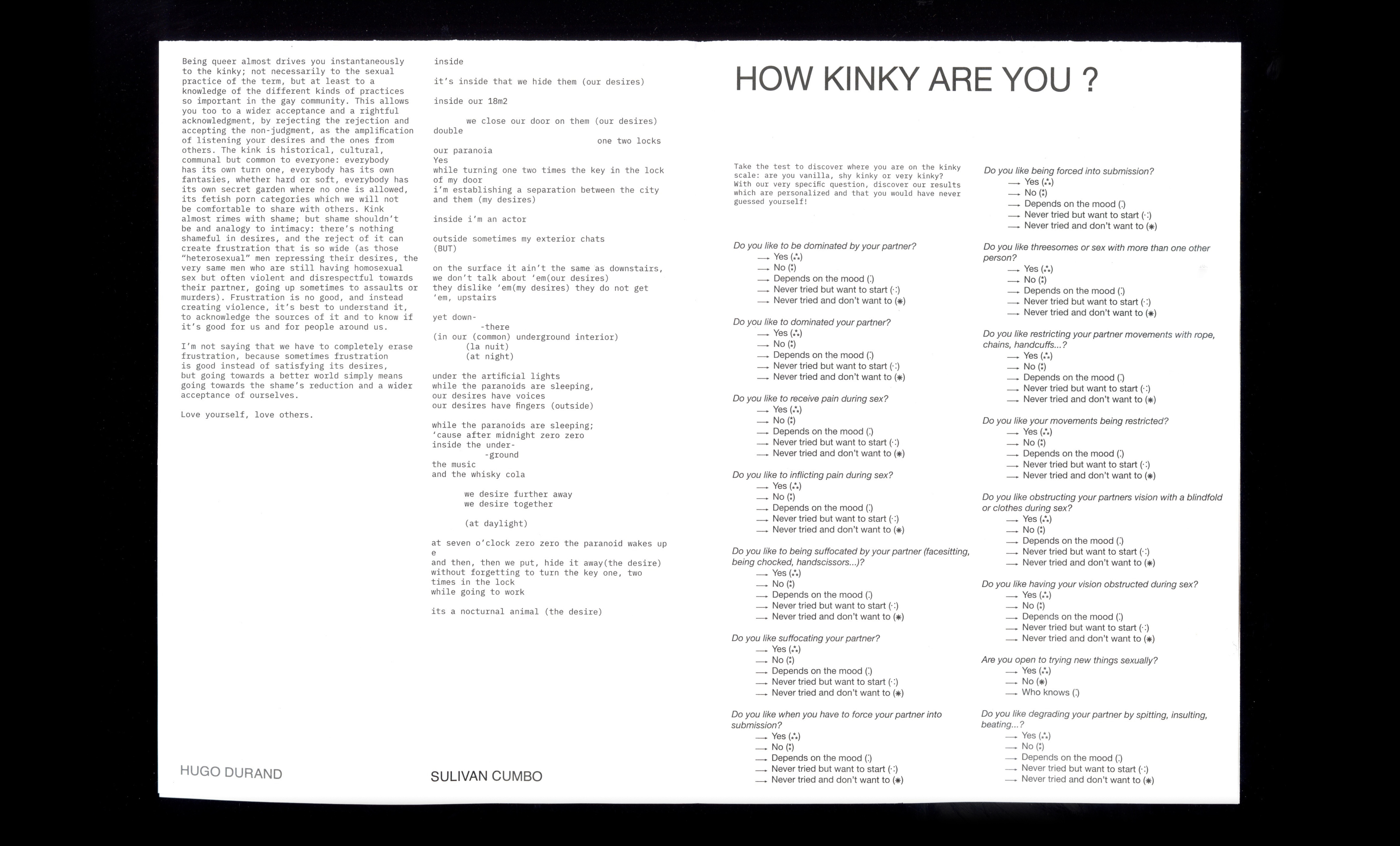 En collaboration avec Blanche Blouin, Ève Chabanon, Thomas Conchou, Sulivan Cumbo, collectif désamianT, Léane Gorgette, Hiba Hach-Hach, Ambre Kopac, Marguerin Le Louvier, Roxanne Maillet, Laurence Merle, Richard Nielsen, Zachary-Joe Pauvert, Jade Ponsard, POX, Festival Quais du Polar, Mathilde Quint, Pauline Reignier, Romane Rossillon, Rosette Thierry, Hédi Tnani.