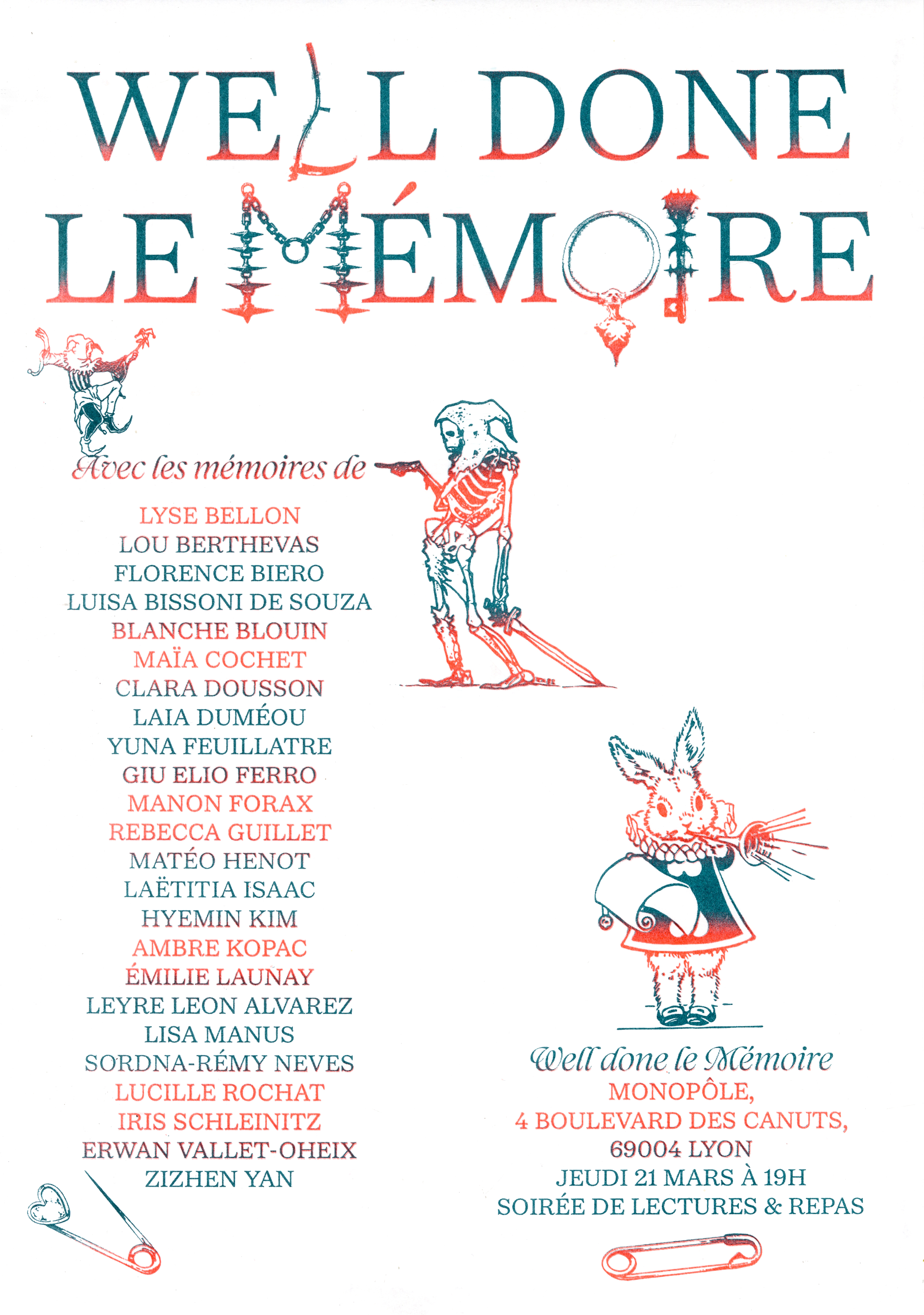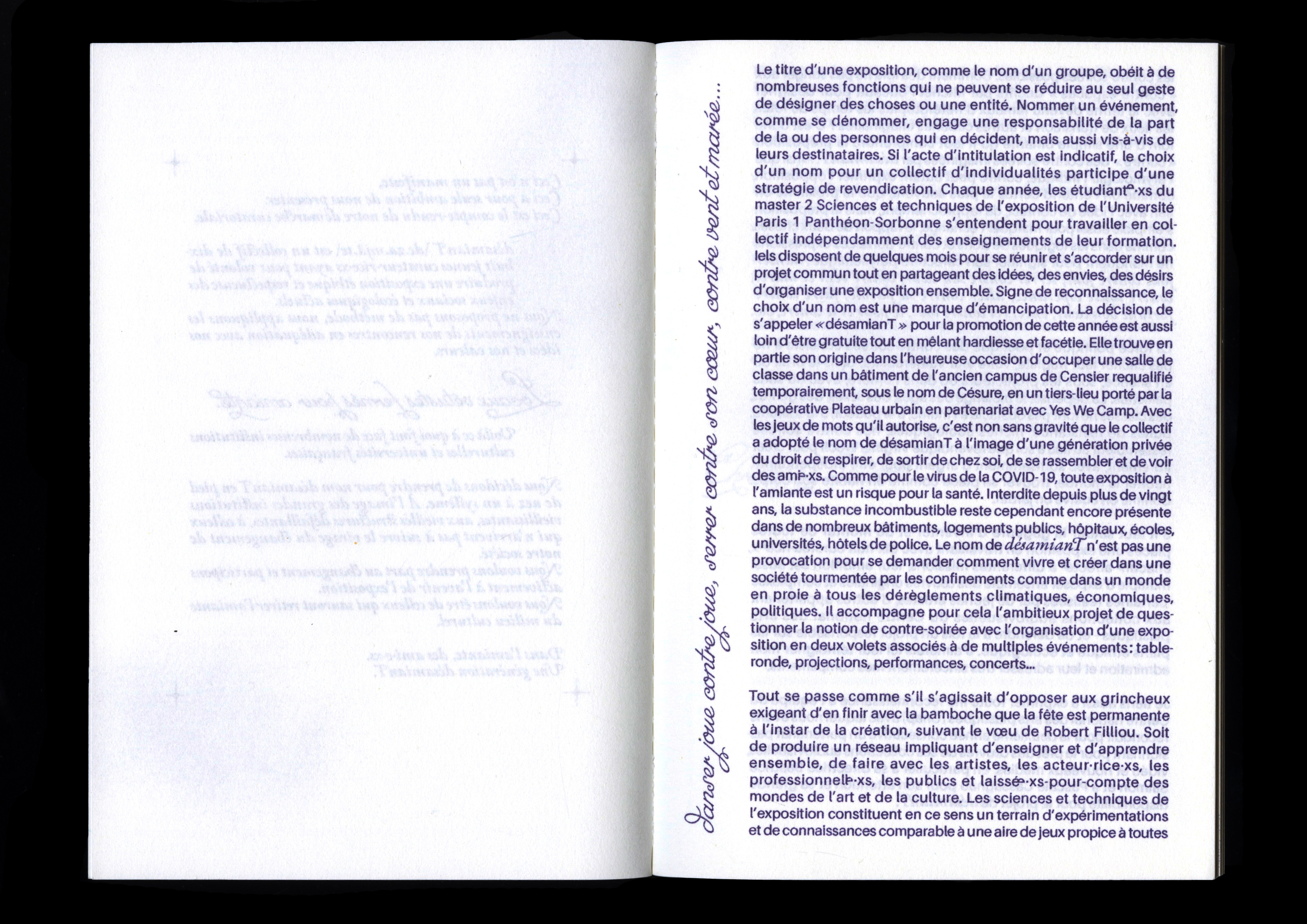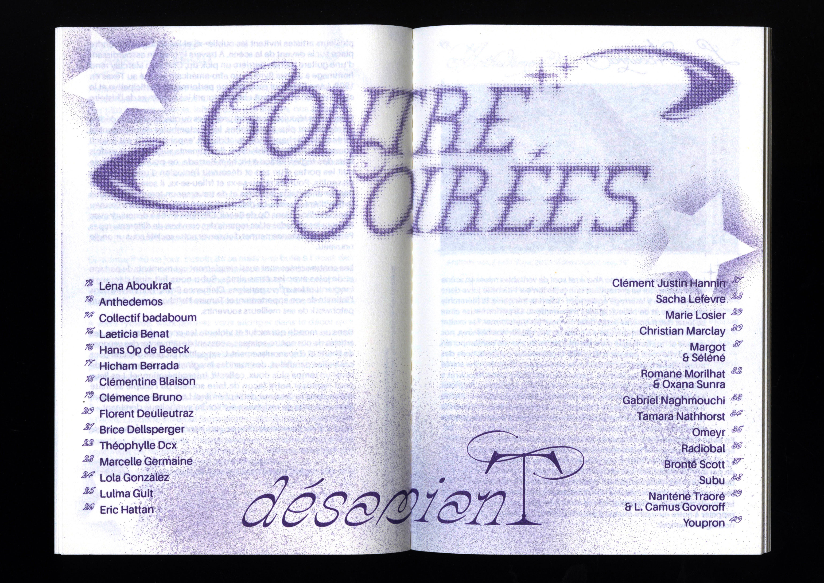 En collaboration avec Blanche Blouin, Ève Chabanon, Thomas Conchou, Sulivan Cumbo, collectif désamianT, Léane Gorgette, Hiba Hach-Hach, Ambre Kopac, Marguerin Le Louvier, Roxanne Maillet, Laurence Merle, Richard Nielsen, Zachary-Joe Pauvert, Jade Ponsard, POX, Festival Quais du Polar, Mathilde Quint, Pauline Reignier, Romane Rossillon, Rosette Thierry, Hédi Tnani.